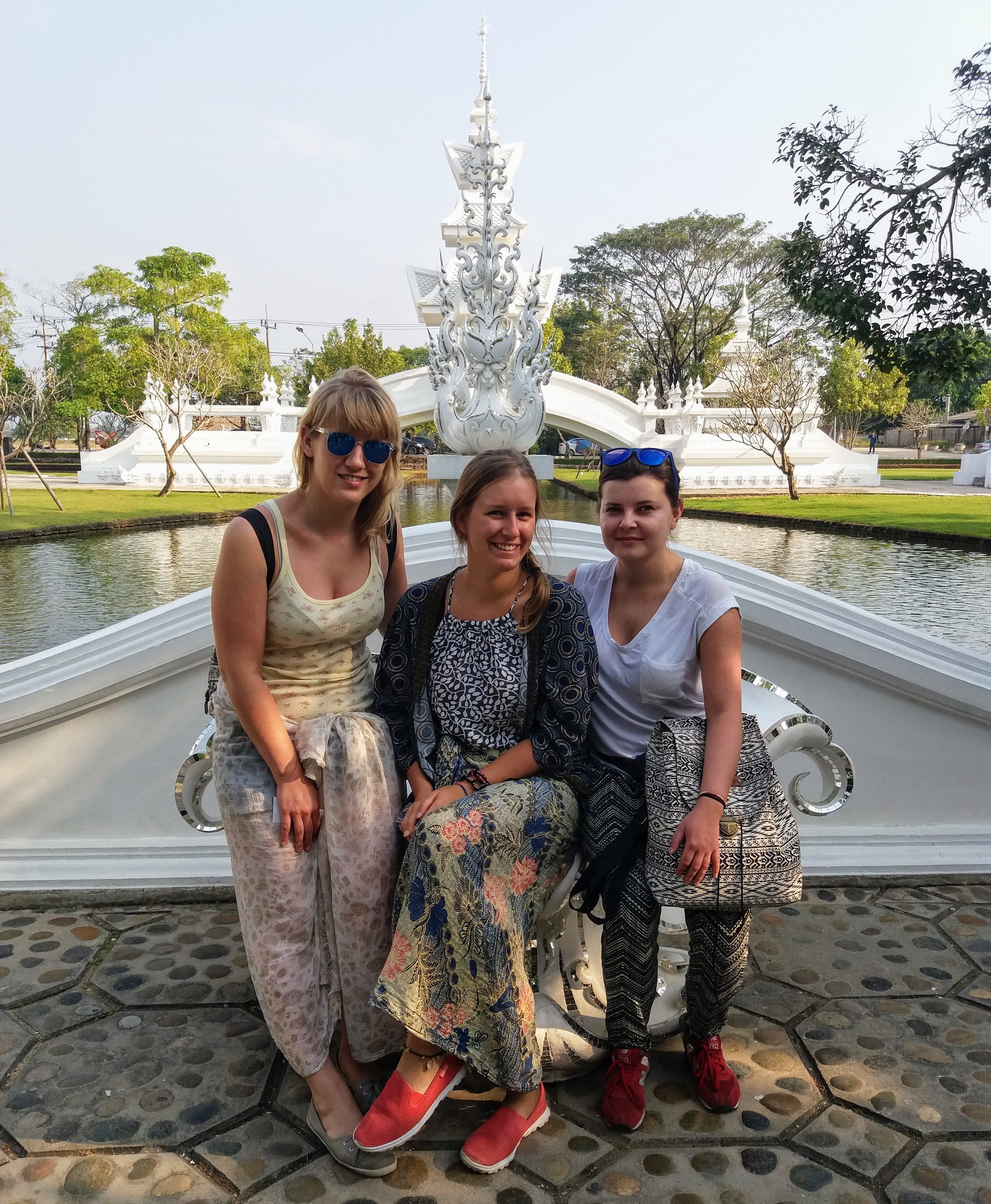 Drogę z Chiang Mai do Chiang Rai przebyłyśmy autobusem. Podobnie jak pociągi, tajskie busy zachowują wysoki standard i są dosyć wygodne nawet na dłuższe trasy. Za około 3-godzinny przejazd zapłaciłyśmy 160 bahtów. W ten oto sposób znalazłyśmy się jeszcze dalej na północy Tajlandii.
